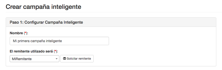 Dependiendo si tienes activada la opción de Validación automática de remitente podrás crear un remitente o solicitar un remitente nuevo si lo necesitas.