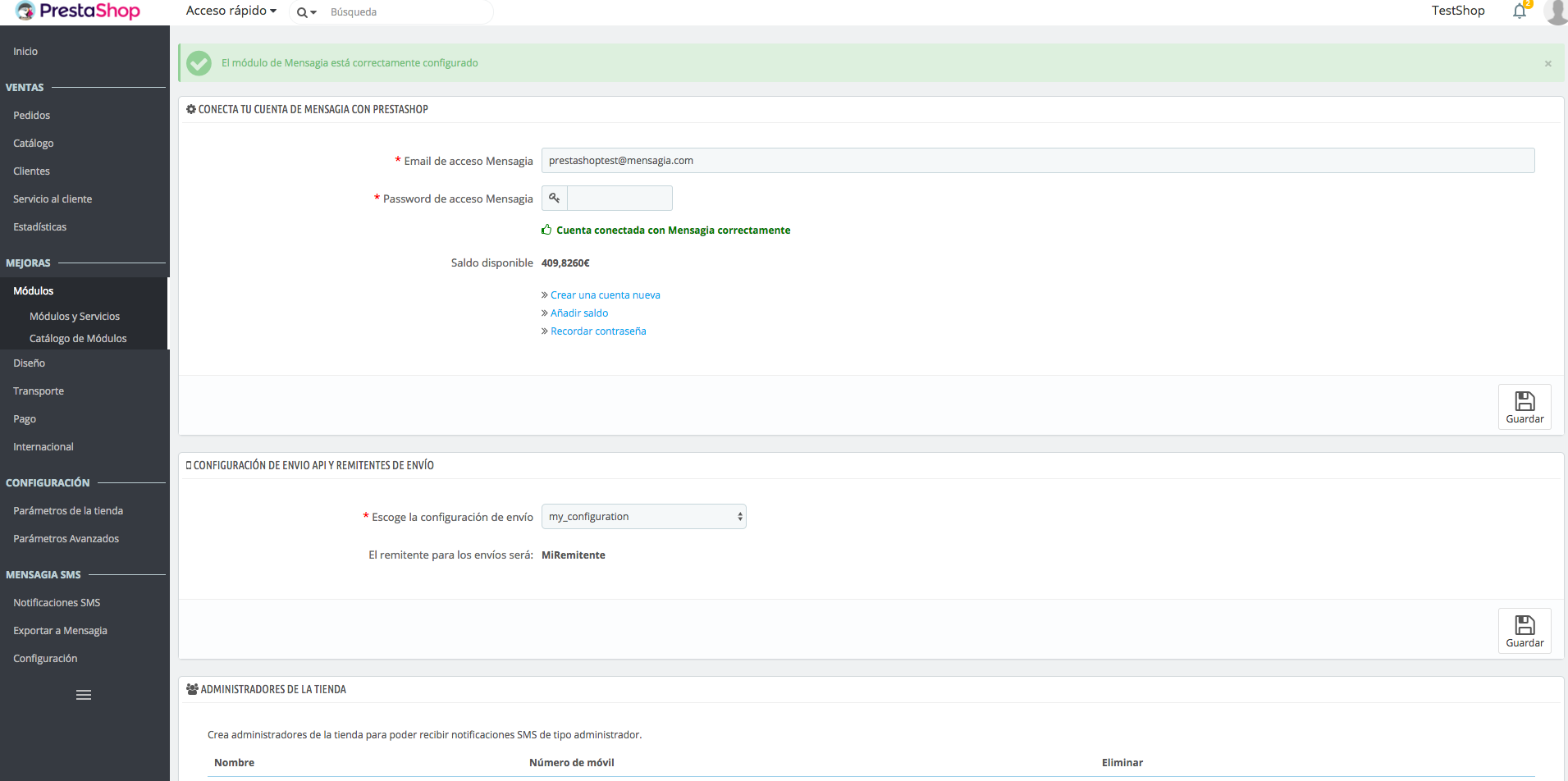 Una vez hayas instalado el módulo de Mensagia en Prestashop debes configurarlo para poder utilizarlo.