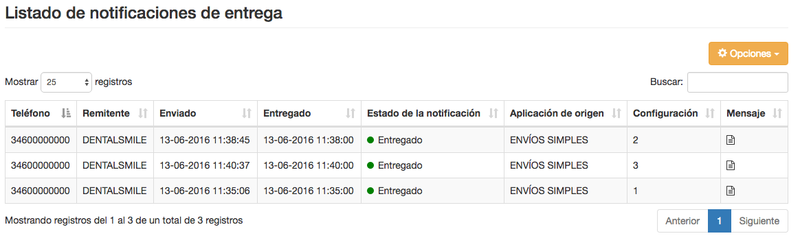 Las notificaciones de entrega son informes detallados que cada una de las operadoras de telefonía móvil nos envían, por cada uno de los SMS que envías a tus contactos. Cada notificación de entrega está relacionada con un envío SMS realizado, y en este informe viene detallado el resultado de dicho envío y la fecha en que hemos recibido la notificación por parte de la operadora de telefonía móvil.
