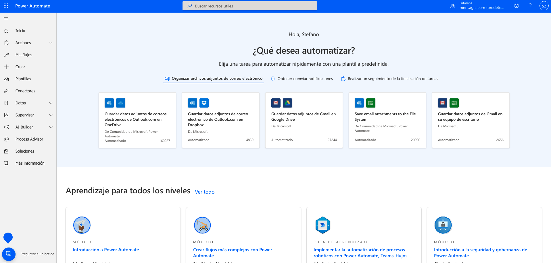 Para utilizar el conector de Mensagia con Power Automate necesitas disponer de una cuenta Premium. Si tu empresa ha comprado Microsoft 365 o Dynamics 365, es posible que ya tengas acceso a Power Automate.